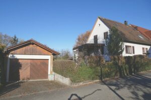 vollunterkellert, mit Gewölbekeller, große Einzelgarage mit Satteldach. Das Dachgeschoss ist ausgebaut, gut nutzbarer Spitzboden. Sonniger, großer Garten mit Freisitz, kleines Wasserbassin zum Abkühlen im Sommer, überdachter Sitzplatz mit Holzbackofen, überdachte Terrasse auf der Südseite mit Windschutz, Balkon im DG.