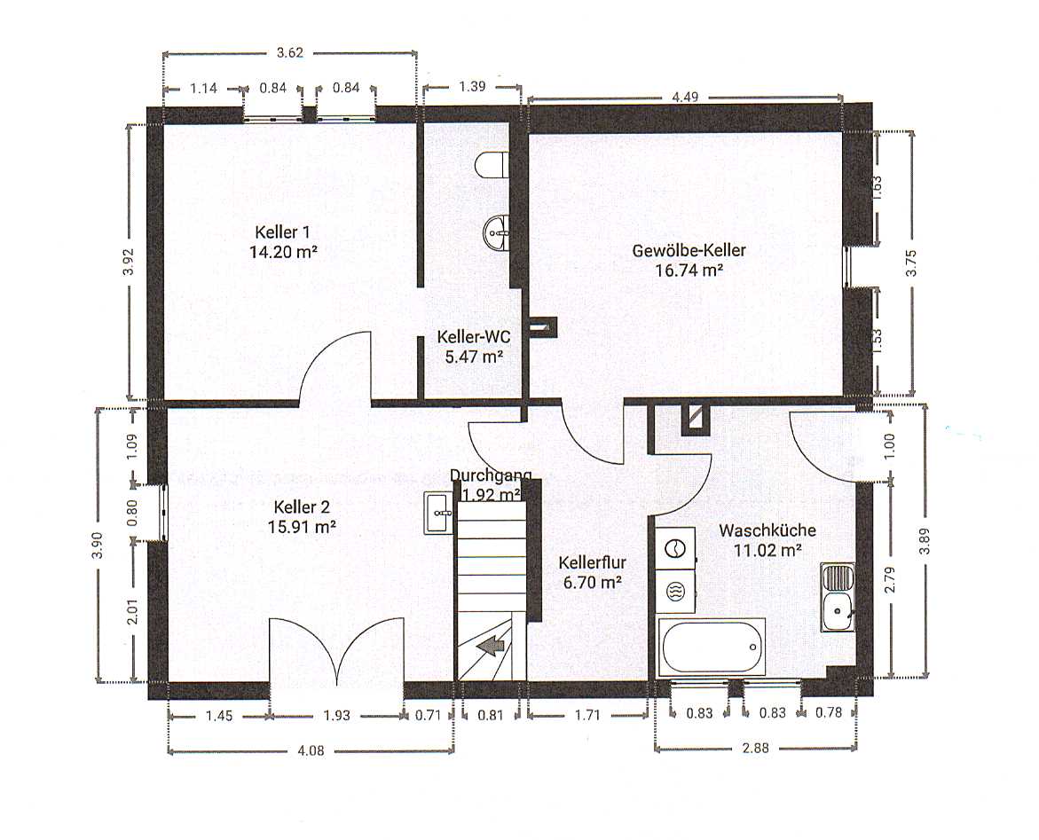 mit Ausgussbecken und Ausgang zum Garten, Gewölbekeller, ein Zimmer im UG mit Infrarotkabine.