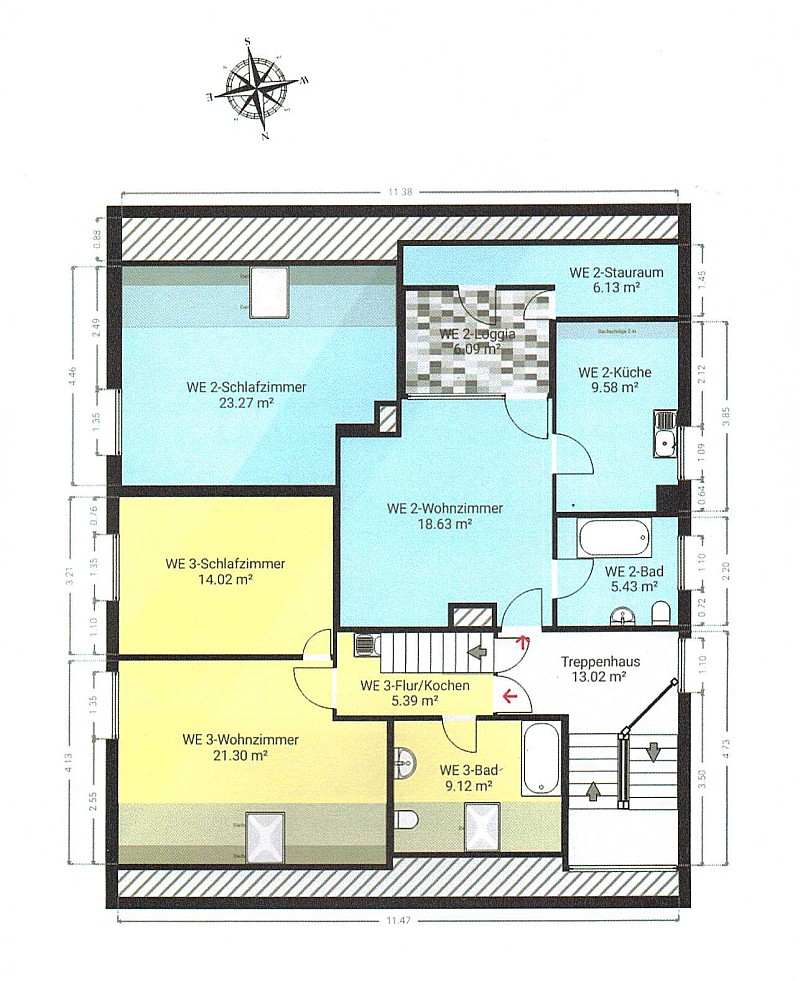 Im Dachgeschoss sind 2 Wohnungen vorhanden. Diese können auch zu einer großen 4 Zi. Wohnung mit 2 Bädern umgestaltet werden !