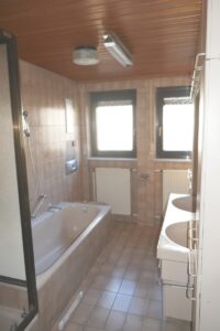 EG: Gäste- WC, Tagesslichtbad mit Dusche, Badewanne, Bidet, WC u. Doppelwaschtisch.